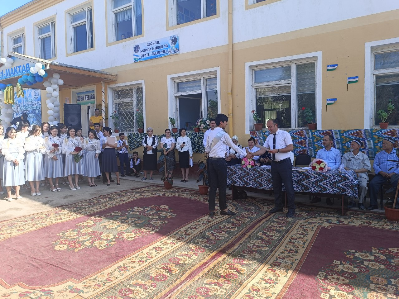 Hazorasp tumani 21-son maktabida 2022-2023 o'quv yilining so'ngi kuni 25-may so'ngi qo'ng'iroq tadbirlari a'lo darajada o'tkazildi, tadbirda Al-Xorazmiy mahallasi faollari huquq tartibot orgini hodimlari maktab rahbariyati o'qituvchi va o'quvchilar qatnashdi.